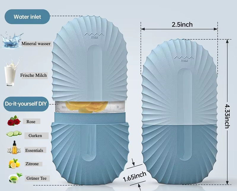 Der Gesichts-Eisroller kann die Hautpflegewirkung ganz nach Ihren Wünschen und mit individuellen Formeln verstärken, die auf Ihre spezifischen Hautbedürfnisse abgestimmt sind, z. B. Limonade zum Aufhellen oder Kokosnuss zur Verbesserung der Haut. Sie können die Eiswürfel auch mit einem Entsafter auspressen und anschließend Wasser, ätherische Öle und Rosen in die Eiswürfelform geben.
